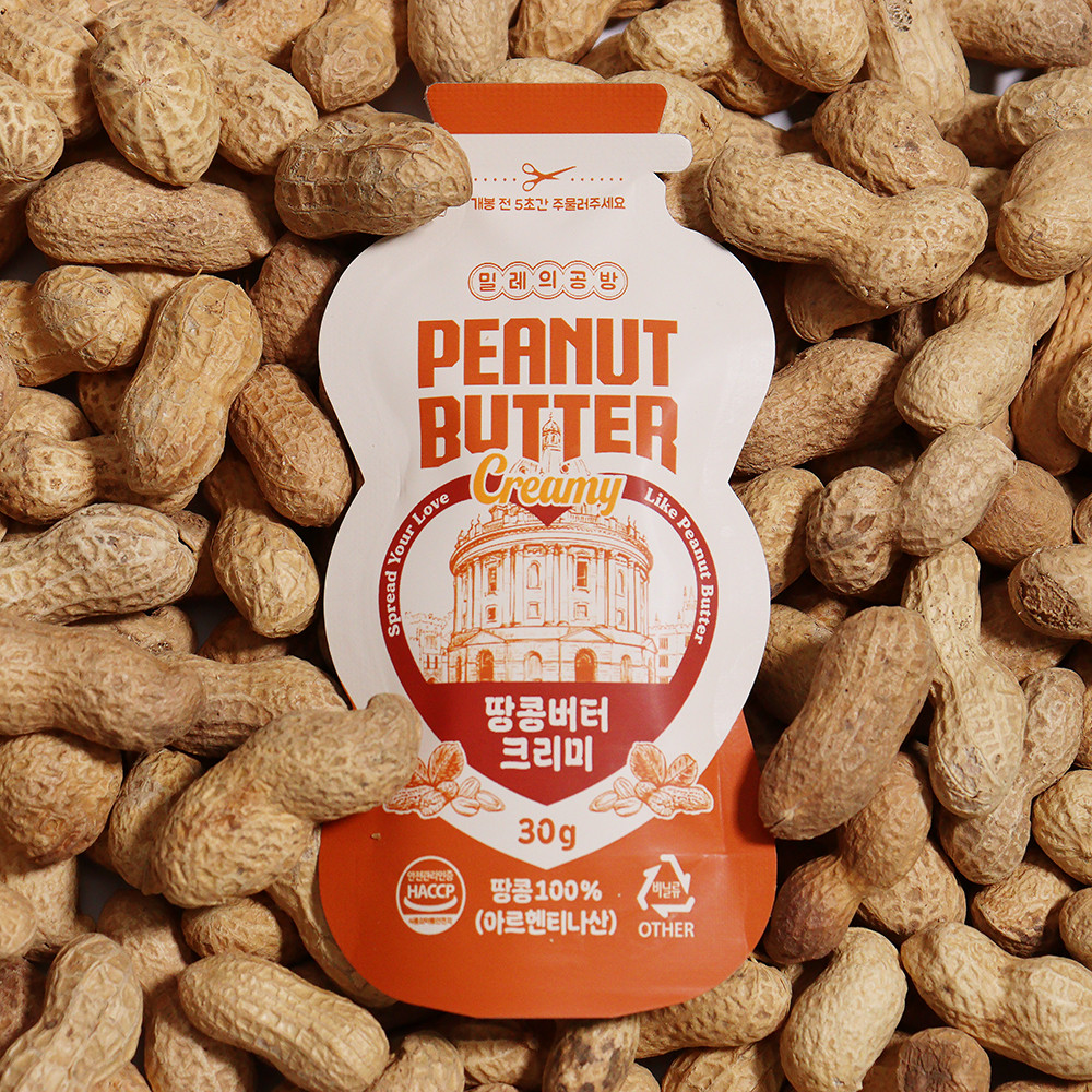 • 무가당 무첨가 짜먹는 밀레의공방 땅콩버터 크리미 소포장 개별포장 스틱 1박스(30g 10개입)